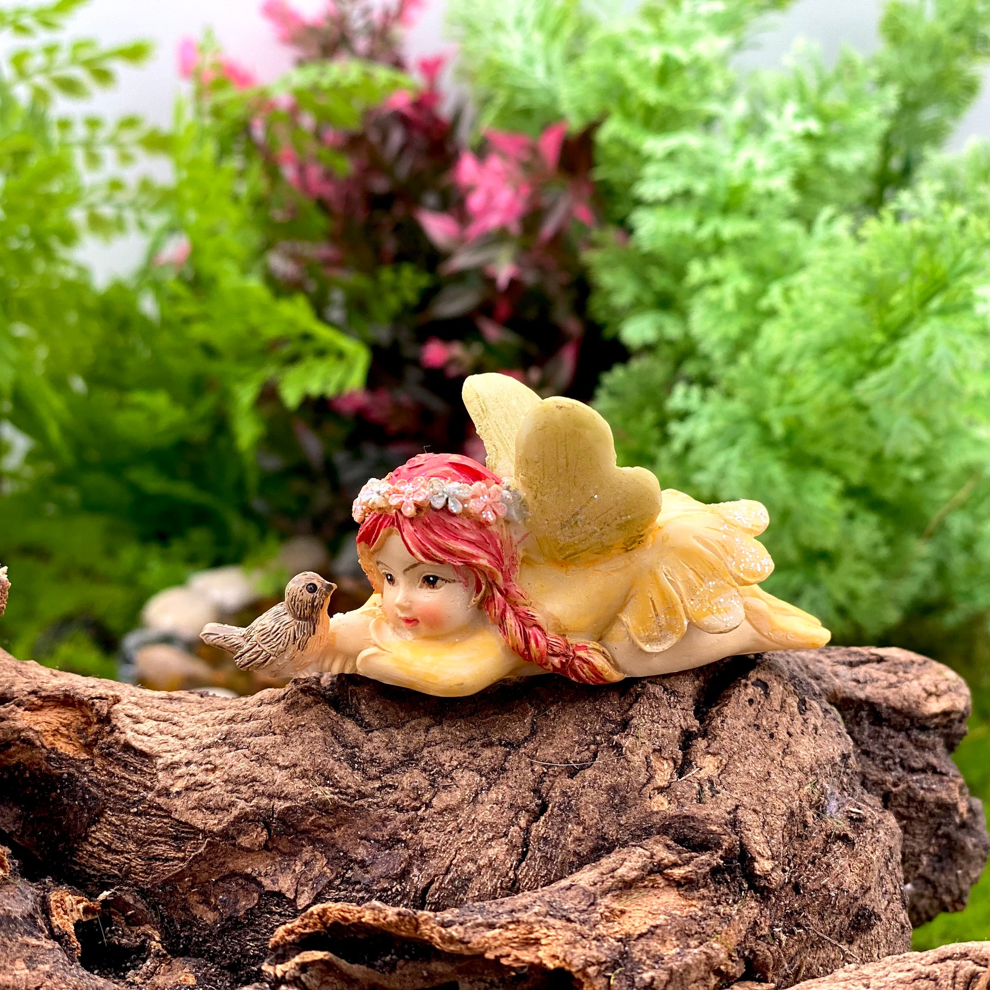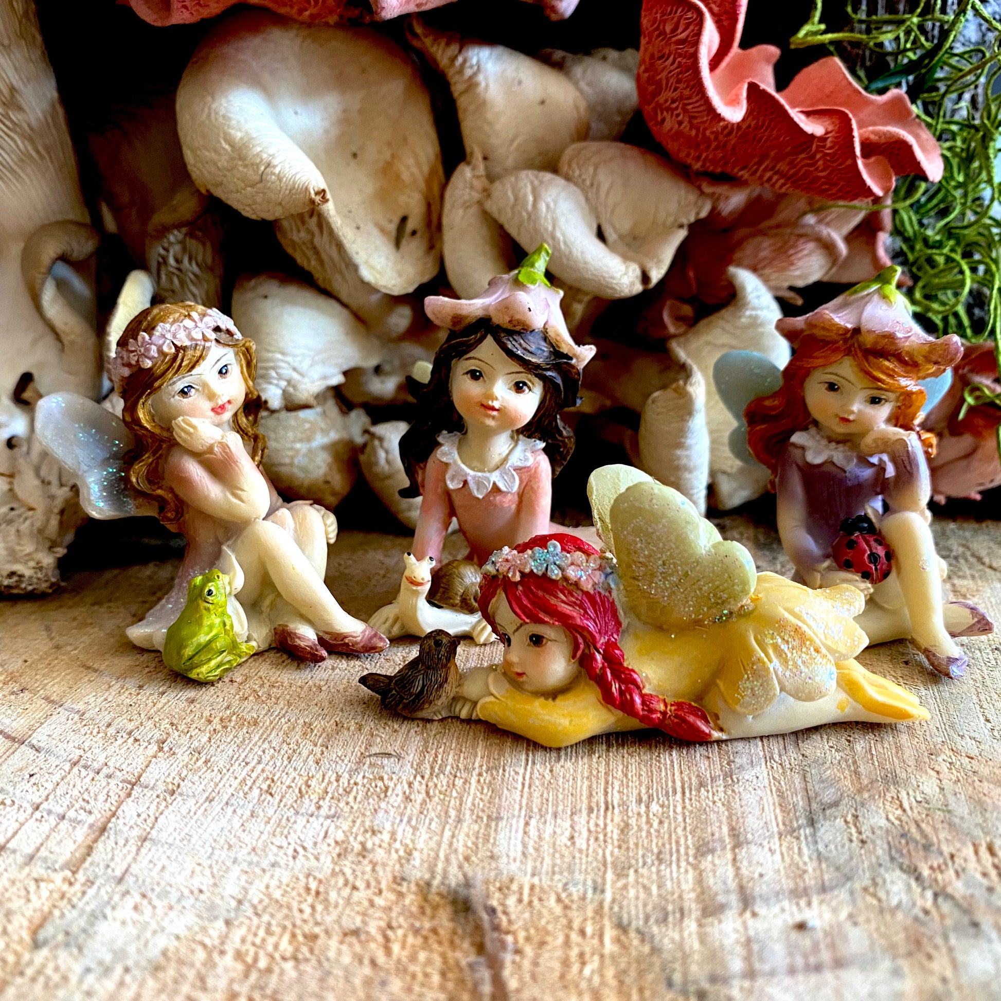 These precious earth fairies are a perfect compliment to the flourishing nature in your gardens. Each fairy holds their favourite little garden animals as they rest amongst your garden.