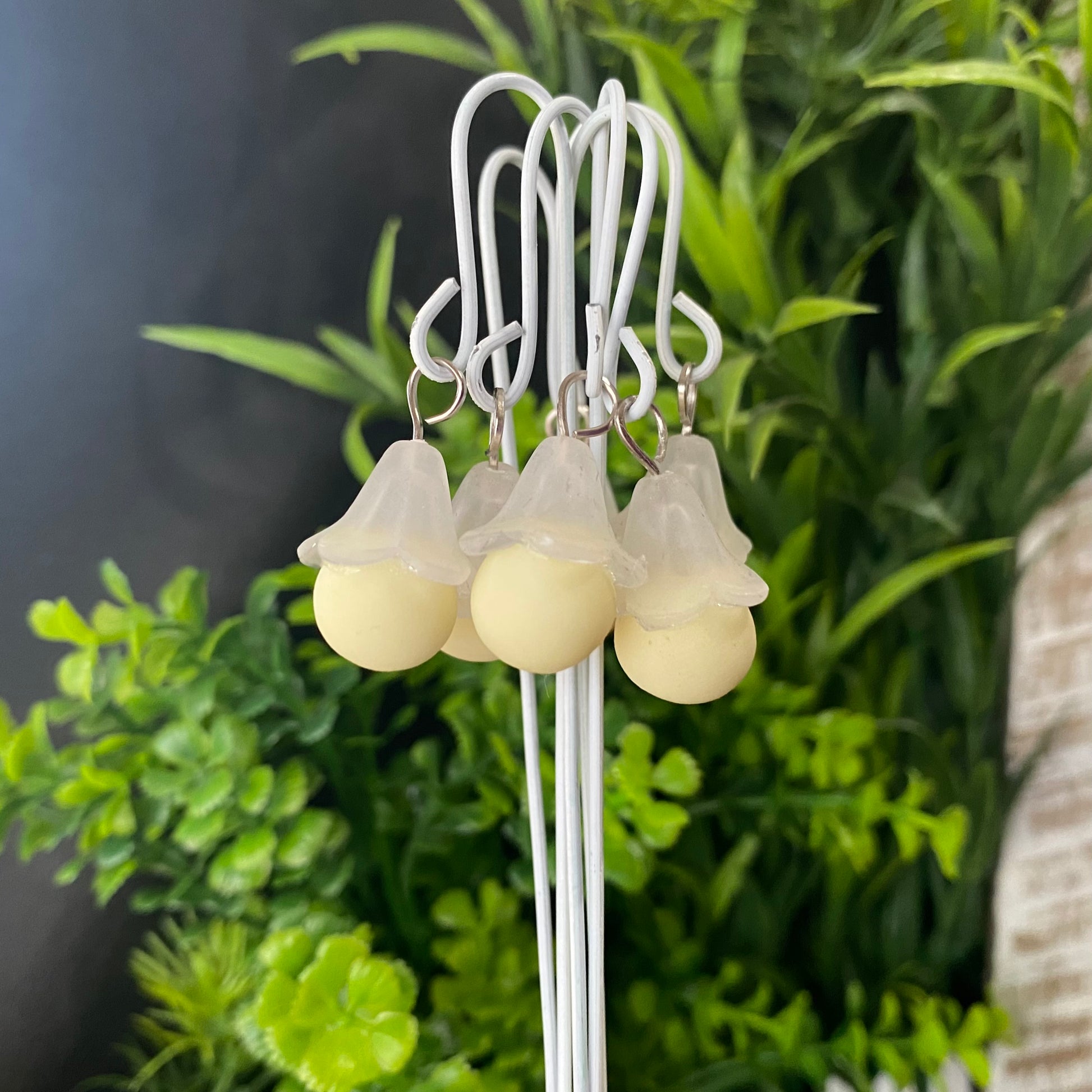 The glow in the dark component is the polymer clay ball at the base of he Lilly flower. They come on a range of frosted colours and are sold separately and as a set of 10.