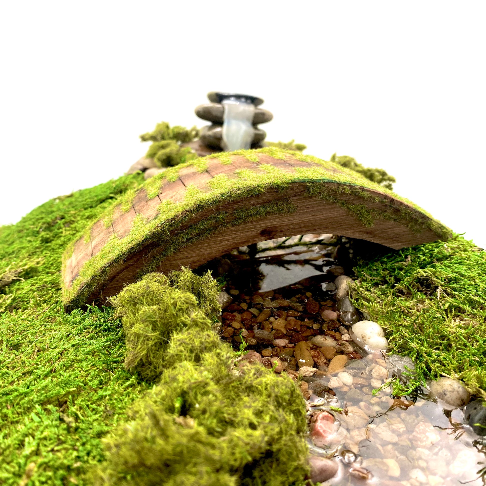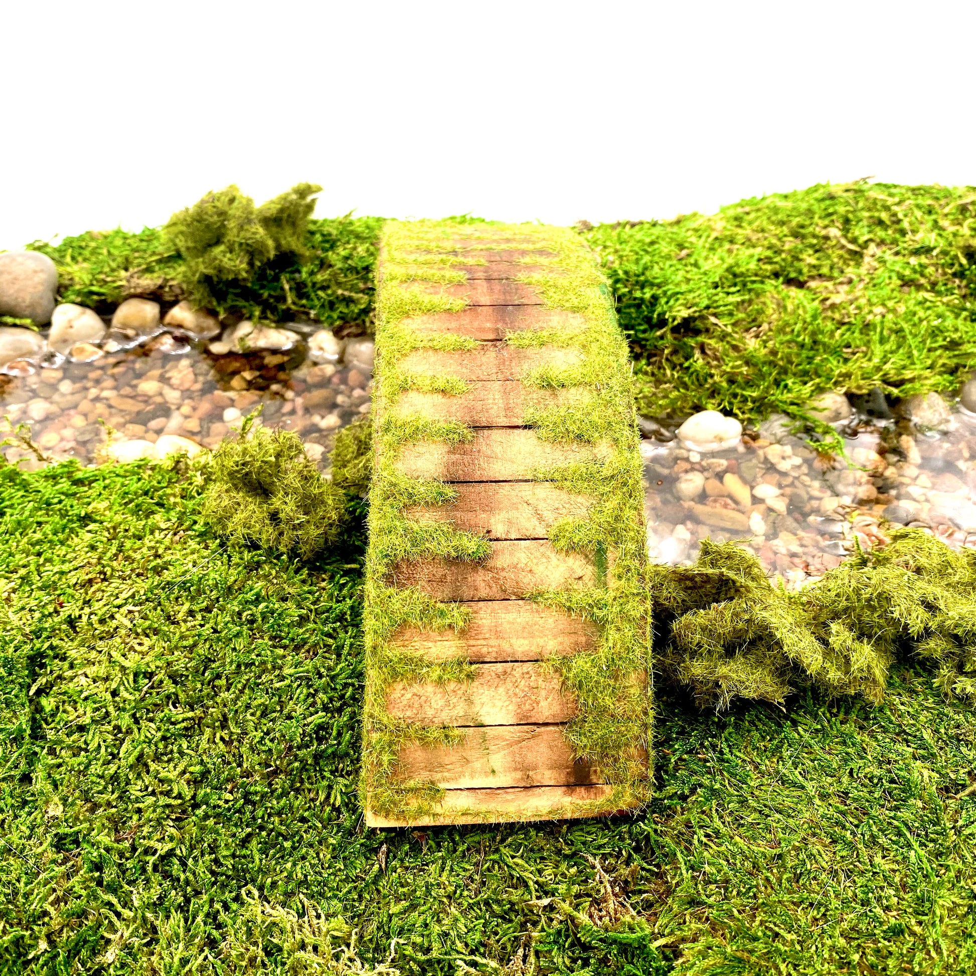 This wooden fairy garden bridge is 100% handmade and a part of our exclusive wood range from Steph the Fairy Maker. The Bridge is constructed of marine ply and treated pine and covered with artificial moss for its natural look.